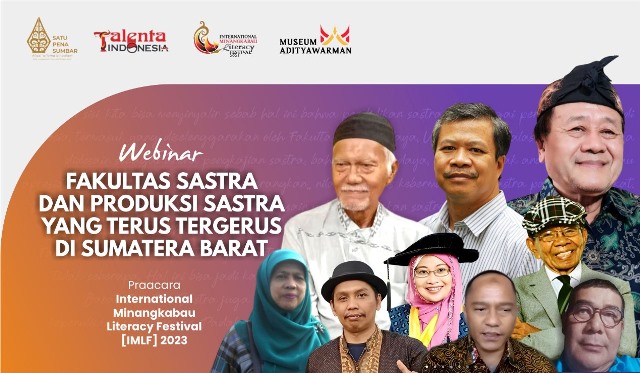Demikian terungkap dalam Webinar bertemakan Fakultas Sastra dan Produksi Sastra yang Terus Tergerus di Sumatera Barat, Senin (19/12/2022) malam. Webinar diselenggarakan SatuPena Sumbar bersama Yayasan Sumbar Talenta Indonesia, dalam rangka pra acara International Minangkabau Literacy Festival (IMLF) 2023 yang gelar pada 22-27 Februari 2023 mendatang.