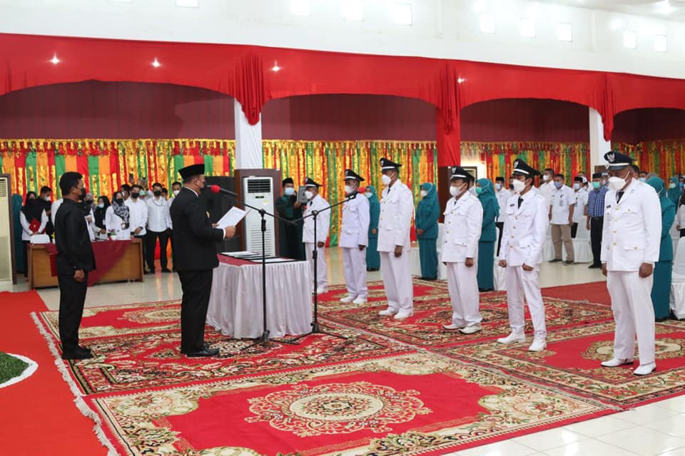 Dharmasraya, Siberindo – Enam wali nagari terpilih hasil Pilwana (Pemilihan Wali Nagari) serentak Kabupaten Dharmasraya pada 31 Maret lalu resmi dilantik oleh Bupati Dharmasraya, Sutan Riska Tuanku Kerajaan, Rabu (21/4/21). Prosesi pelantikan dilangsungkan dengan protokol kesehatan ketat, di Auditorium Kantor Bupati Dharmasraya.