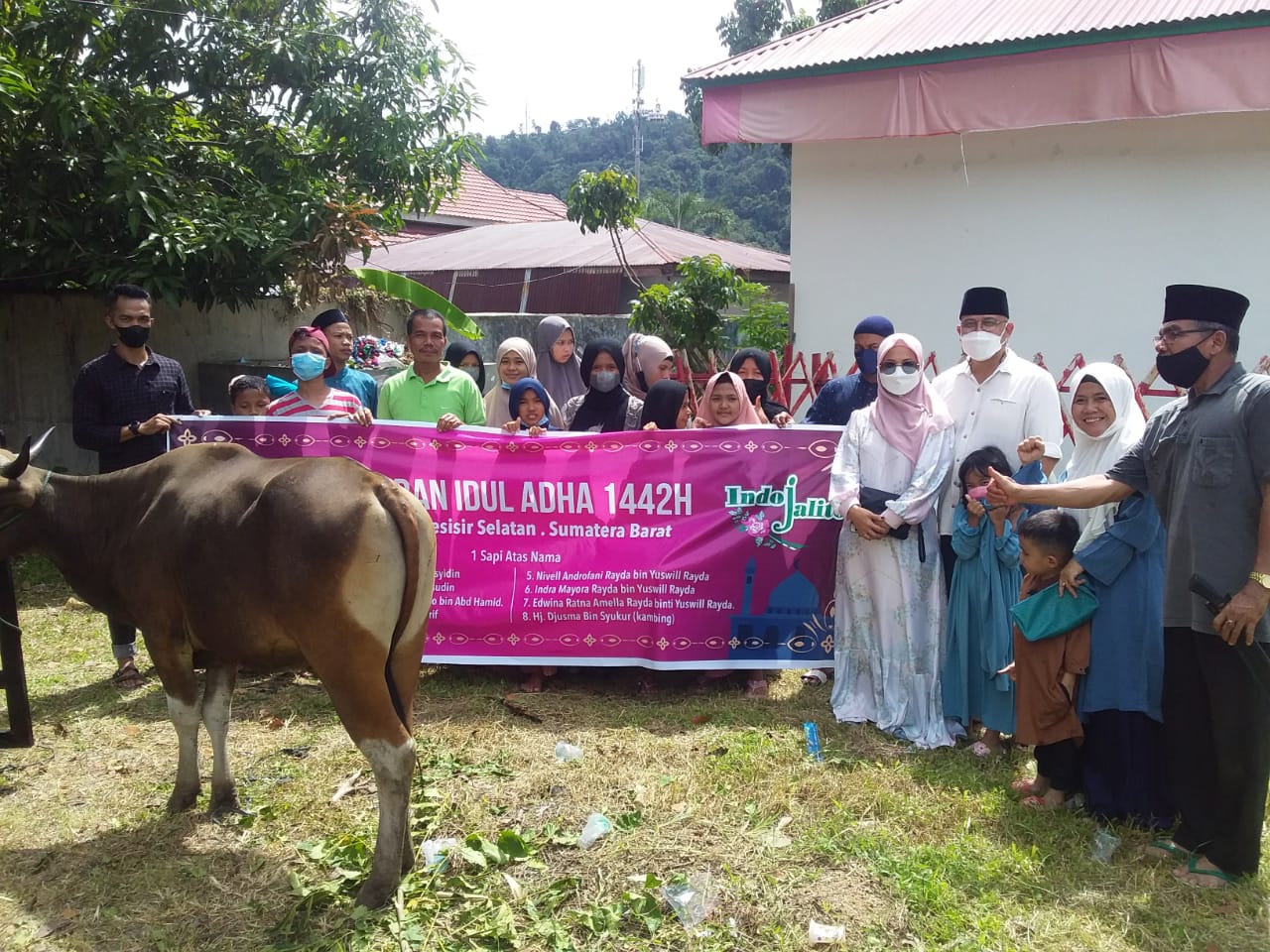 Sambut Idul Adha 1442 H/2021 Masehi, atas nama Keluarga Besar Indo Jalito, organisasi perempuan yang ada di Jakarta berkurban 1 ekor sapi dan 1 ekor kambing di Painan, Pesisir Selatan, Sumbar.