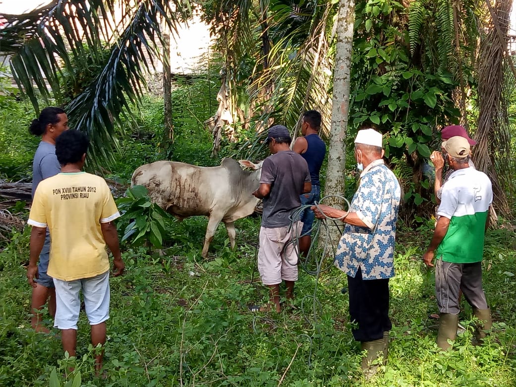 LUBUK BASUNG, Siberindo-Satu hari paska Hari Raya Idul Adha 1443 H, Rabu (21/7/2021) pada berbagai daerah, baik di Kota Lubuk Basung, ibukota Kabupaten Agam, Sumatera Barat, melakukan penyembelihan hewan qurban, diantaranya di Monggong, Nagari Persiapan Surabayo, Kecamatan Lubuk Basung.