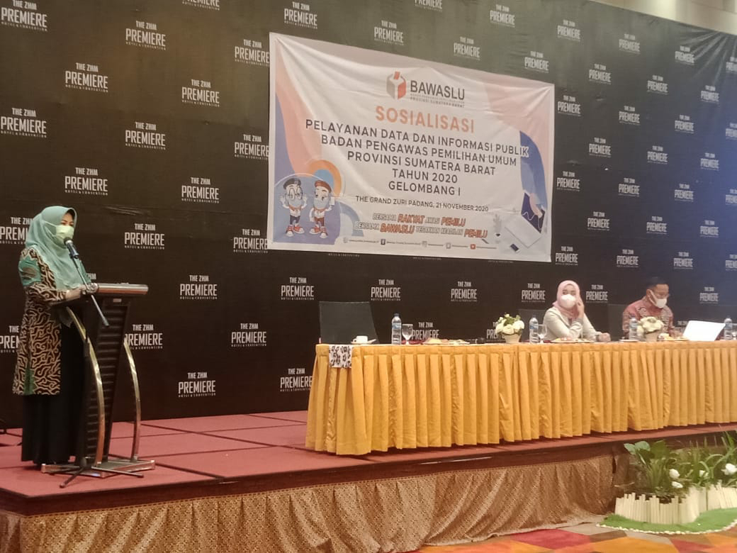 Padang, Siberindo – Sebagai lembaga yang mengawasi proses penyelenggaraan pemilihan kepala daerah (Pilkada), Badan Pengawas Pemilu (Bawaslu) Sumbar, melakukan Sosialisasi pelayanan data dan informasi publik, Sabtu (21/11/2020), disebuah hotel di kota Padang.
