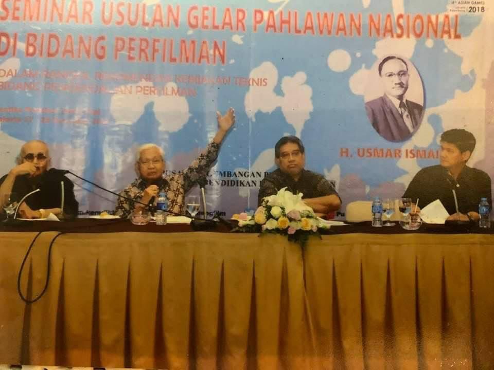 Kebetulan beberapa hari lalu, saya pas menemukan foto di file saya, sebuah foto seminar beberapa tahun silam, soal usulan Usmar Ismail menjadi calon Pahlawan Nasional dari bidang perfileman. Ada Prof. Salim Said. Ada
