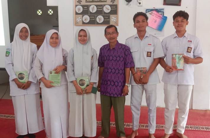 Di akhir acara, Armaidi menyerahkan buku kepada lima orang siswa/siswi yang aktif bertanya selama acara berlangsung. (r/*)