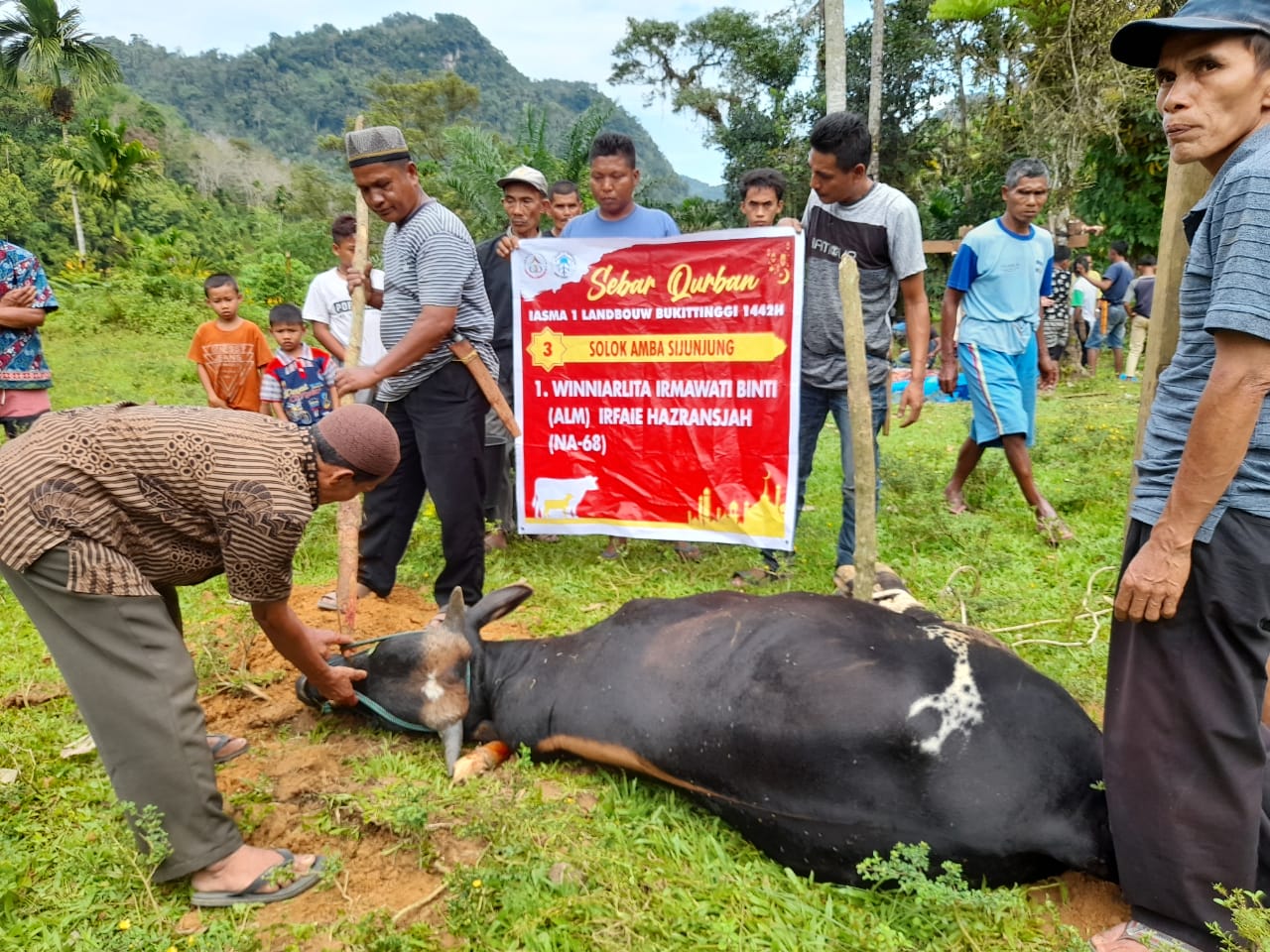 Ketua IASMA 1 Negeri 1 Bukittinggi Sumatera Barat, angkatan ’81 Marlina, mengatakan, secara keseluruhan pelaksanaan sebar hewan qurban tahun ini berjalan lancar, mulai dari pengadaan hewan hingga proses pendistribusiannya ke lokai yang dituju. “Kami salut dengan kinerja TPK IASMA Negeri 1 Landbouw Bukittinggi, yang sudah sangat maksimal bekerja, mewaqafkan waktunya, mengurus pengiriman hewan qurban ini. Semoga Allah SWT membalasnya dengan pahala yang berlipat ganda,” terangnya. Marlina menambahkan, aksi tebar hewan kurban ini merupakan kegiatan sosial dan bentuk motivasi bagi seluruh alumni SMA Negeri 1 Bukittinggi lintas angkatan untuk ikut berpartisipasi, dan sebagai perwakilan sebagian diantara alumni ikut menjadi saksi di lokasi penyembelihan hewan qurban tersebut. Pada kesempatan yang sama Ketua TPK IASMA Negeri 1 Landbouw Bukittinggi dari angkatan ’88, Benni Fitraza menuturkan, kegiatan tebar hewan kurban ke daerah terpencil ini ini adalah untuk yang ke 13 kalinya, dengan donator seluruh alumni yang dengan sukarela menyisihkan pendapatan mereka bagi mereka yang membutuhkan. “Sapi yang disebar tahun ini ada 35 ekor, yang didistribusikan ke Kabupaten Agam sebanyak 8 Sapi, Kabupaten Sijunjuang 10 ekor, di Kabupaten 50 Kota 3 ekor, dan di Kabupaten Pasaman 14 ekor sapi,” sebutnya. Menurut Benni Fitraza, sebelum sapi kurban ini di tebar sebelumnya dibentuk tim survey lapangan yang mendata masing-masing daerah, dan pada umunya masyarakat di daerah itu hidup dalam keterbatasan ekonomi, sehingga layak untuk dibantu dengan menebarkan hewan kurban di daerahnya. “Mekanisme penentuan titik lokasi tebar hewan kurban ini dilakukan dengan tujuan agar pendistribusiannya tepat sasaran, sehingga makna tebar hewan kurban benar-benar dirasakan seluruh masyarakat Kabupaten Agam, Kabupaten 50 Kota, Kabupaten Pasaman, dan Kabupaten Sijunjung, yang memang sangat membutuhkan,” tuturnya. Ketua Pelaksana sebar hewan qurban TPK IASMA Negeri 1 Landbouw Bukittinggi, Romi Mayka dari angkatan ’93, menyebutkan, sistem penjaringan hewan qurban dengan memanfaatkan tenaga suplier atau pengelola hewan ternak, yang disesuaikan dengan aturan dan kebutuhan, serta dari hasil pemilihan hewan yang dilaksanakan tidak ditemukan sapi yang dalam kondisi sakit, sehingga layak untuk disebarkan pada daerah yang telah dipilih sesuai kriteria.