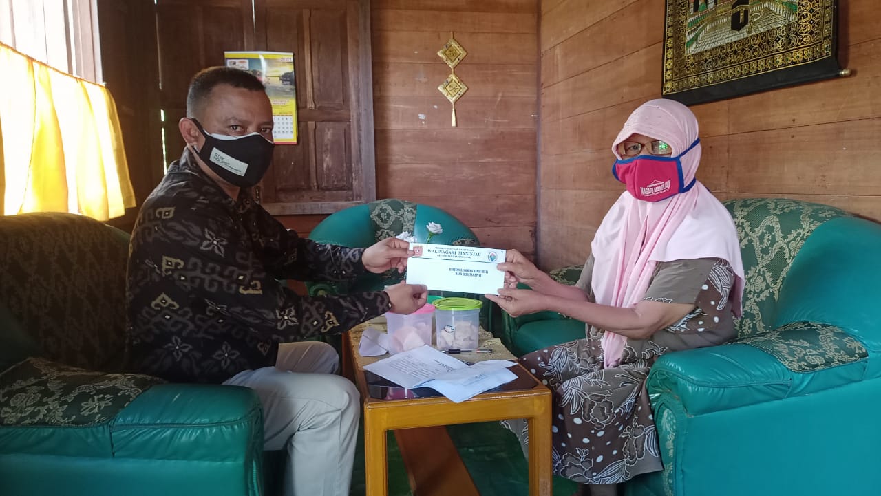 Maninjau, siberindo.co — Pemerintah Nagari Maninjau, Kecamatan Tanjung Raya, Kabupaten Agam kembali mendistribusikan bantuan langsung tunai dana desa (BLT DD) kepada masyarakat miskin. Sebanyak 40 keluarga penerima manfaat (KPM) mendapat BLT DD tahap keenam, Kamis (22/7). Proses penyaluran bantuan sosial itu diantar langsung oleh wali jorong terkait ke rumah masing-masing penerima. Walinagari Maninjau melalui Wali Jorong Pasar Maninjau, M Sidi Bagindo mengatakan, bantuan sosial yang disalurkan merupakan salah satu wujud kepedulian pemerintah terhadap masyarakat miskin yang terdampak pandemi Covid-19.