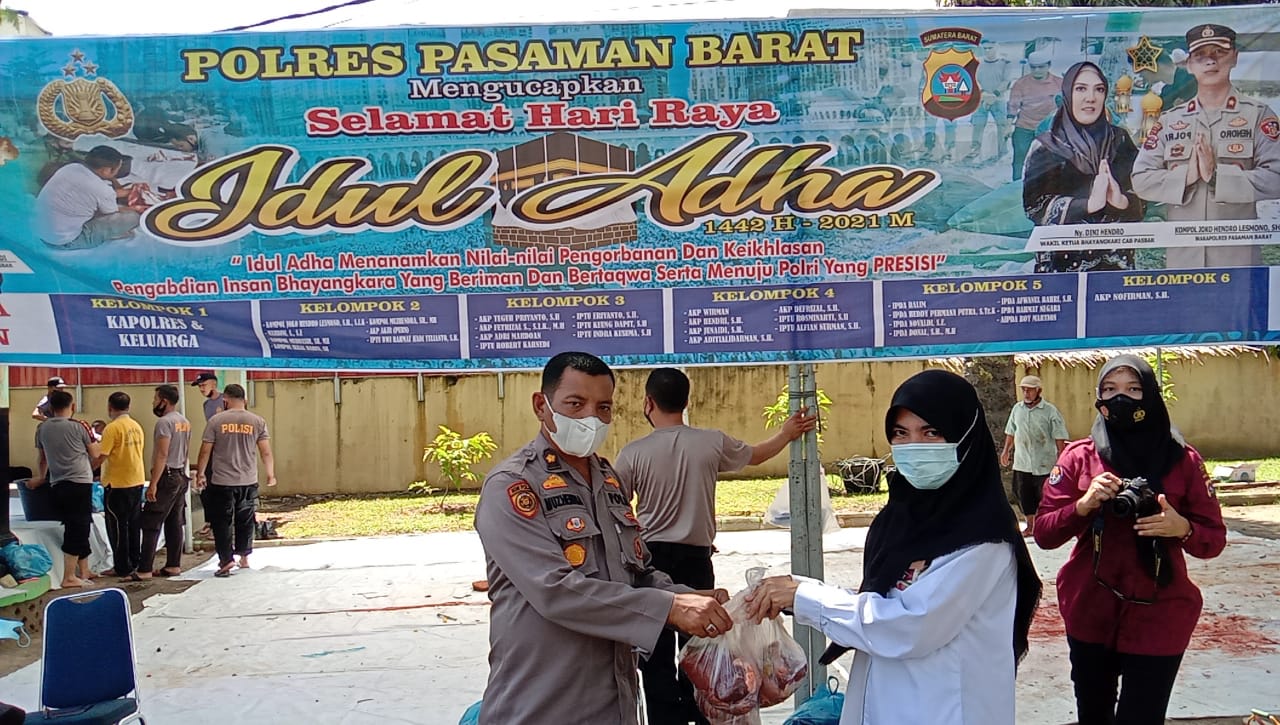 Kompol Muzhendra menerangkan, Sesuai himbauan bupati Pasbar, Pemotongan daging qurban kali ini dilaksanakan hari kedua Idul Adha, supaya menghindari kerumunan ini akan dibagikan kepada warga  yang sedang merayakan idul adha di masa pandemi Covid-19 yang sedang mewabah.