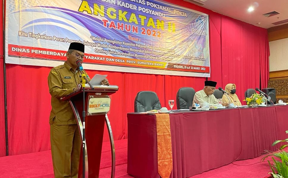 Hal itu ditegaskan oleh Gubernur Sumbar Buya Mahyeldi dalam membuka Peningkatan Kapasitas Kader Posyandu Angkatan II/2022 yang dilaksanakan Dinas Pemberdayaan Masyarakat Desa (PMD) Sumbar di Hotel Rocky Padang, Senin (21/3/2022) malam.