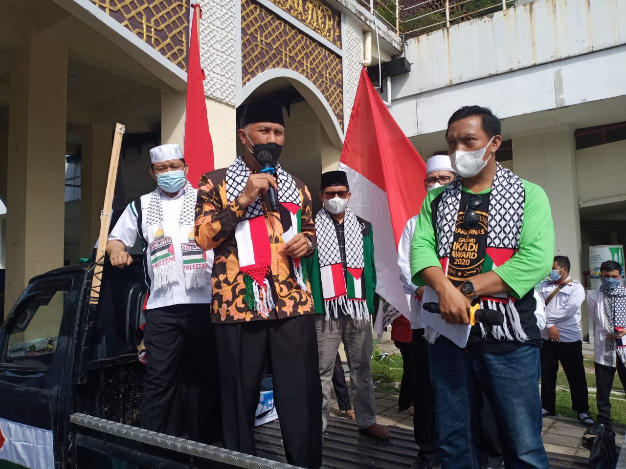 “Untuk itulah kita hadir pada hari ini pertama-tama untuk melakukan pembelaan kepada Palestina. Perjuangan kemerdekaan dan perjuangan menuntut hak bagi warga masyarakat Palestina,” ujarnya.