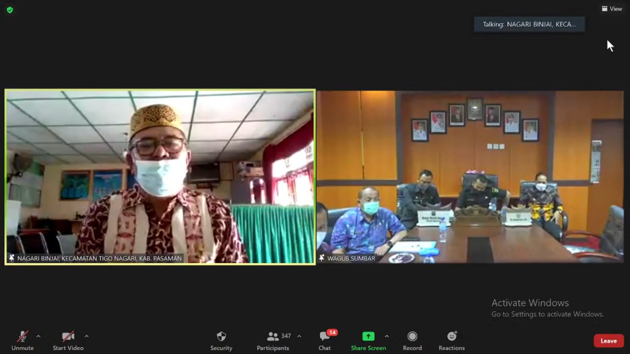 Evaluasi dilakukan melalui zoom meeting yang diikuti Kadis PMD kabupaten/kota, ratusan Wali Nagari, Kepala Desa dan Lurah se-Sumbar pada hari Kamis (22/7) dari Kantor Bupati Sijunjung. Tampak hadir mendampingi Wagub Audy antara lain Bupati Benny Dwifa Yuswir, Wakil Bupati Iradatillah dan Kepala Dinas PMD Sumbar Drs. H. Syafrizal Ucok, MM. dan nara sumber utama Tenaga Ahli Kemenkes DR dr Andani Eka Putra, M.Sc.