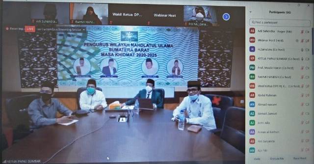 Webinar ditutup pembacaan doa oleh Rois Syuriyah Pengurus Cabang (PCNU) NU Dharmasraya. Kegiatan ini dihadiri partisipan dari berbagai kalangan selain banom NU dan warga nahdliyin, hadir pula kalangan akademisi, politisi dan mahasiswa. (Adi/at)