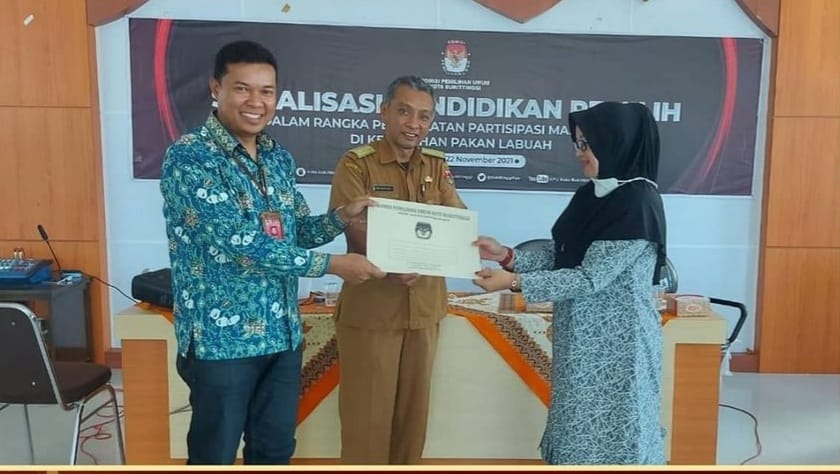 Bukittinggi, Siberindo.co — Masyarakat Kelurahan Pakan Labuah Antusias mendapatkan sosialisasi pendidikan pemilih yang diberikan oleh Ketua KPU Kota Bukittinggi. Sosialisasi dilaksanakan di Aula Kantor Pakan Labuah, Senin (22/11).