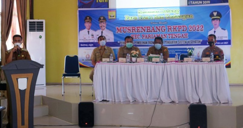 PARIAMAN, Siberindo.co—Untuk mempercepat pemulihan ekonomi dan penguatan sistem kesehatan, Kecamatan Pariaman Tengah Kota Pariaman mengadakan Musyawarah Rencana Pembangunan (Musrenbang) Rencana Kerja Perangkat Daerah (RKPD) Tahun 2022  di Aula Kantor Camat Pariaman Tengah Kota Pariaman, Selasa (23/2).
