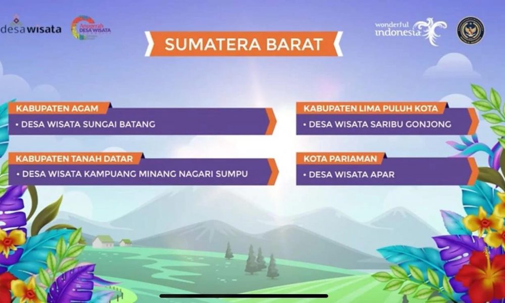 Dijelaskan, khusus untuk Sumatera Barat, 4 desa yang lolos ke babak 50 besar, masing-masing Nagari Sungai Batang, Kabupaten Agam, Desa Wisata Kampung Minang Nagari Sumpu, Kabupaten Tanah Datar, Desa Wisata Seribu Gonjong, Kabupaten 50 Kota dan Kota Pariaman.