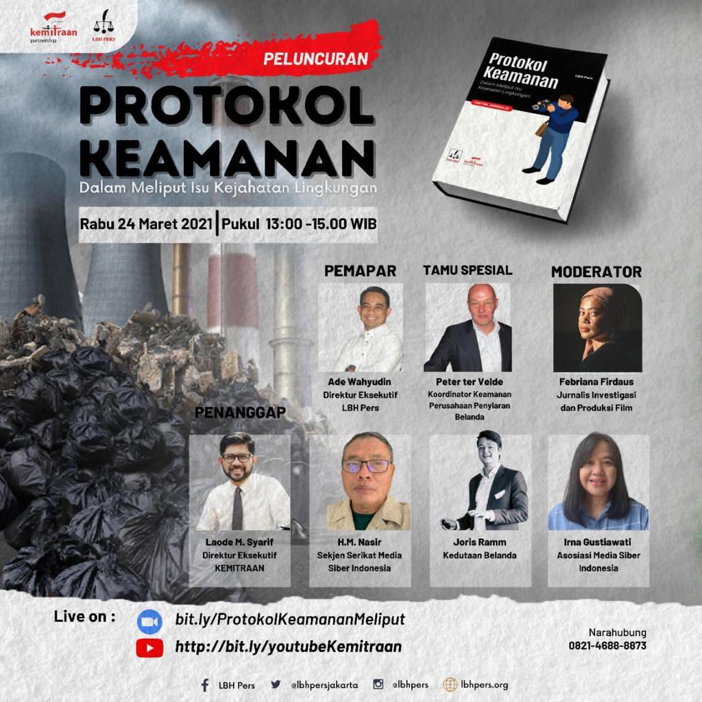JAKARTA, Siberindo— Buku Protokol Keamanan Jurnalis dalam Meliput Isu Kejahatan Lingkungan diluncurkan, Rabu, 24 Maret 2021 oleh Lembaga Bantuan Hukum (LBH) Pers bersama Kemitraan Partnership secara online.