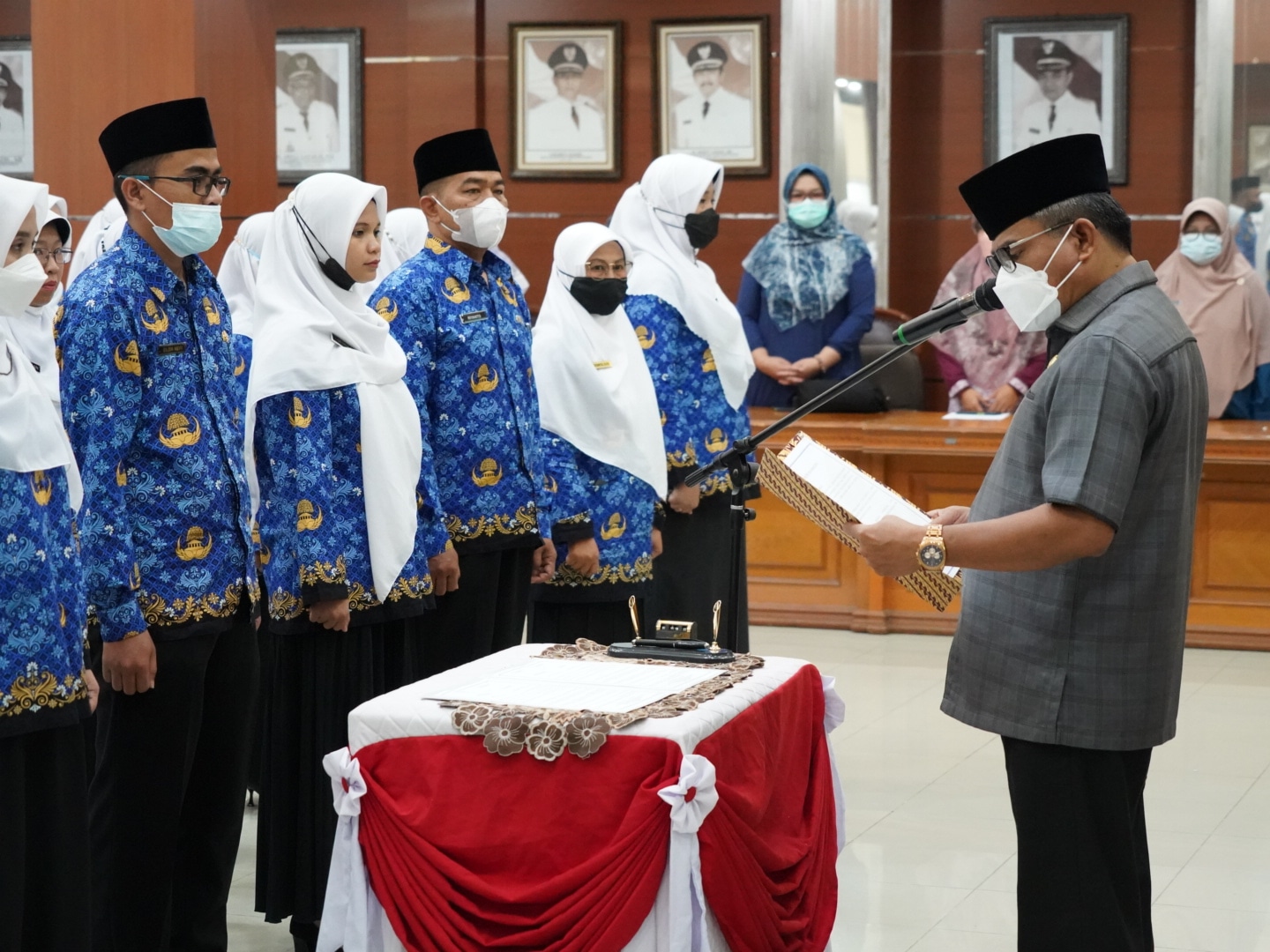 “Mereka dikontrak selama lima tahun. Nantinya dievaluasi dan jika memang masih dibutuhkan, kontrak diperpanjang,” tambahnya. Sekda Bukittinggi, Martias Wanto, menyampaikan selamat kepada 93 orang yang diberikan SK hari ini. 73 merupakan CPNS formasi 2021, 20 lainnya merupakan guru P3K. “Kita ucapkan selamat pada seluruhnya. Berikan yang terbaik untuk melayani masyarakat. Bagi CPNS, masih ada waktu 1 tahun, untuk dievaluasi. Sebagai pelayan kesehatan, maka layanilah seluruh pasien dengan senyum, ramah serta sopan santun dalam bertutur kata dan jangan bertindak kasar. Sedangkan para guru PPPK, ditempatkan sesuai kebutuhan sekolah, jadi diharapkan tidak ada yang berpindah pindah. Menjadi ASN saat ini memang masih menjadi pilihan utama di kalangan para pencari kerja. Untuk Bukittinggi, perbandingannya, 1 kursi diperebutkan 15 orang. Merekan yang lulus merupakan orang-orang yang diberi kesempatan oleh Allah untuk jabatan itu. Jadi berikanlah yang terbaik, yaitu 74 CPNS dan 20 PPPK. Selamat bekerja,”tegas Sekda.