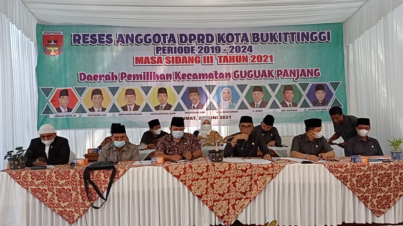 Dalam reses di kecamatan Guguak Panjang, 9 Anggota DPRD Bukittinggi terima sejumlah aspirasi dari para konstituen. Diantaranya, keseriusan pemko untuk penanganan Covid-19 di Bukittinggi. Selanjutnya, warga juga meminta penjelasan terkait dana desa yang belum direalisasikan.