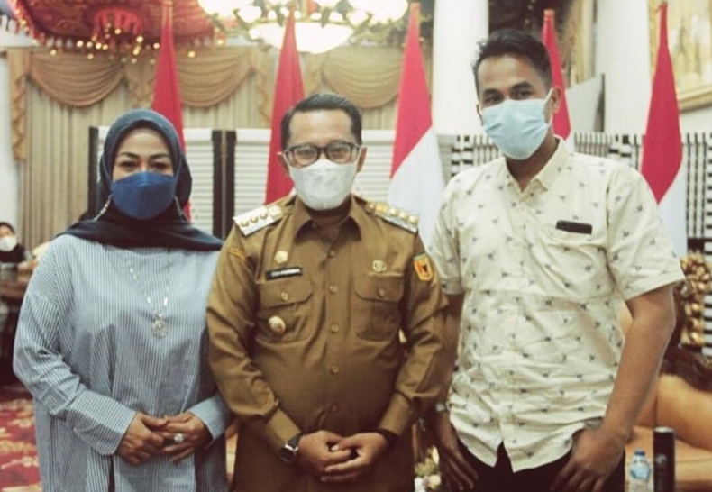 Turut mendampingi Adi, Ketua Yayasan Sumatera Voluenter Muhammad Husen dan Pembina Sumatera Valounter Syafril.