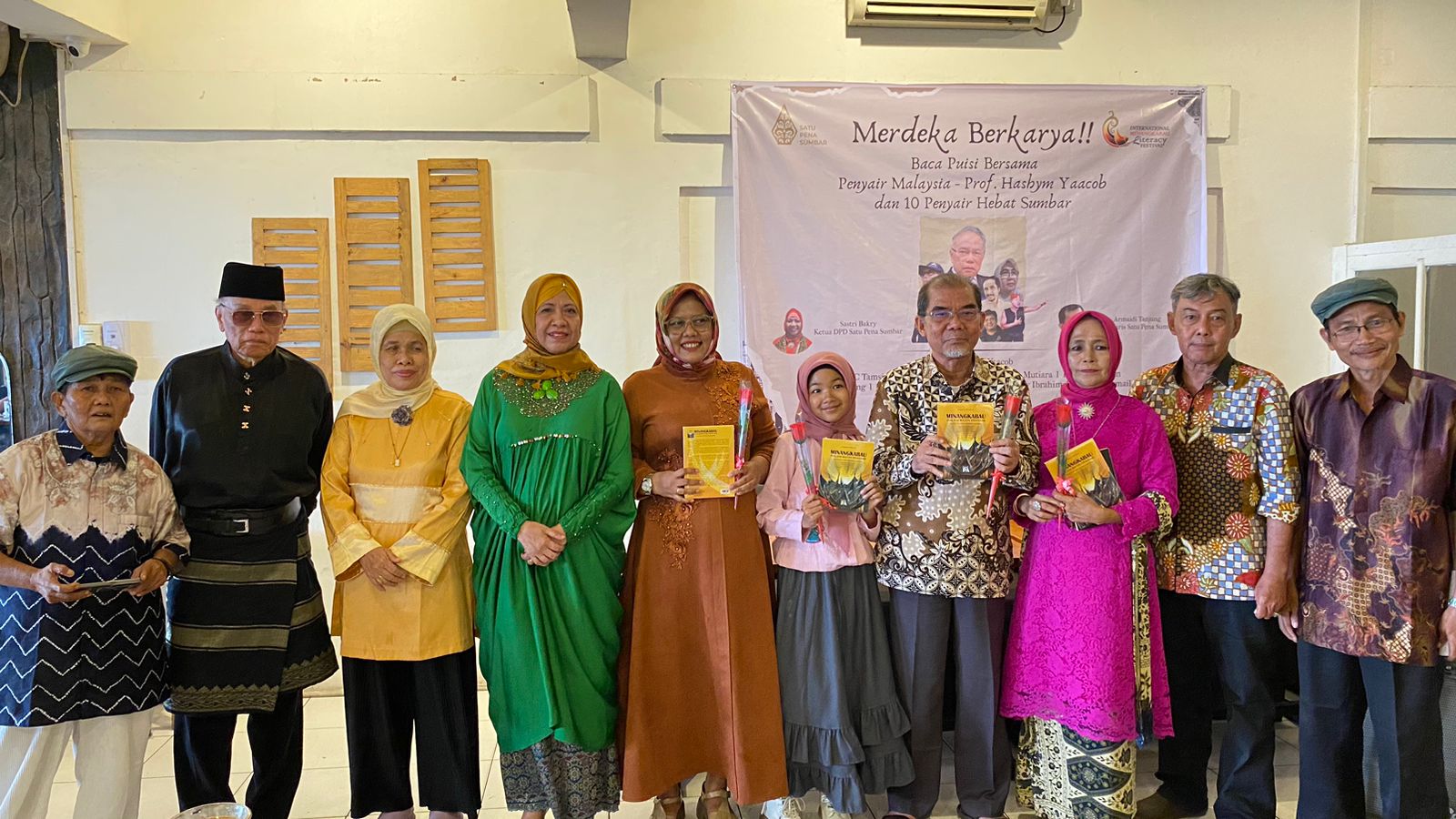 Demikian diungkapkan Penyair Malaysia Prof. Hashim Yaacob pada sesi diskusi acara Merdeka Berkarya!! Baca Puisi bersama Penyair Malaysia Prof. Hasim Yaacob dan 10 penyair hebat Sumbar. Juga tampil beberapa pembaca puisi pemula. Sebanyak 10 penyair hebat Sumatera Barat masing-masing Andria Catri Tamsin, Dadang Leona, Muslim Noer, Mutiara, Refdinal Muzan, Rizal Tanjung, Silvia Roza, Syarifuddin Arifin, Yenny Ibrahim dan Zamzami Ismail.
