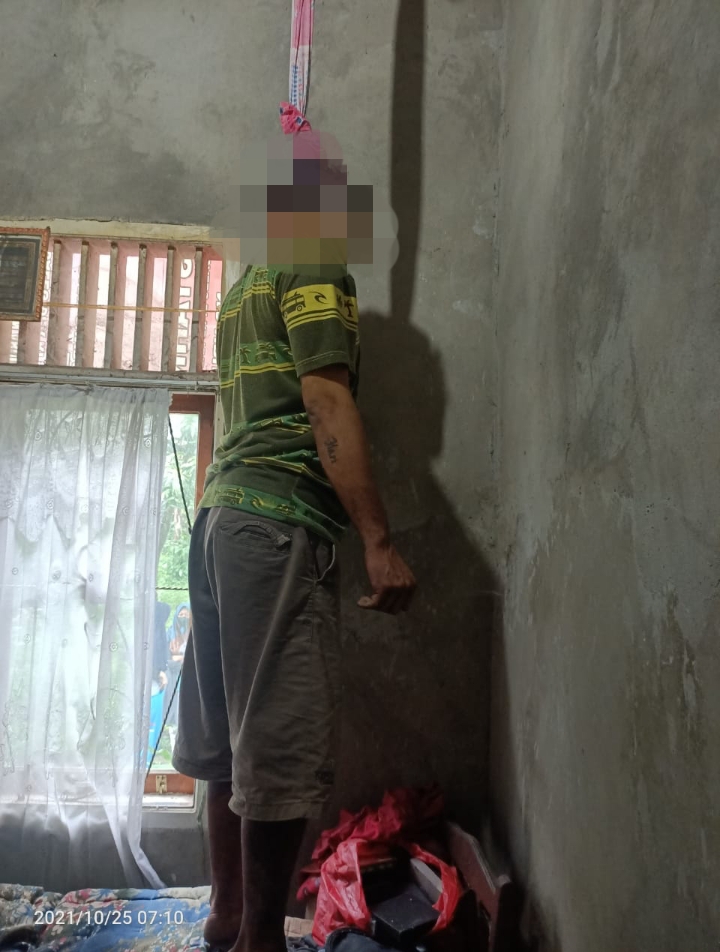 Lubukbasung, siberindo.co — Warga Sampan, Pasar Usang, Jorong III Sangkia, Nagari Lubukbasung, Senin,(25/10) gempar, menyusul ditemukannya HS, (35) meninggal gantung diri di atas platform kamarnya. Korban ditemukan sudah dalam keadaan tidak bernyawa oleh keluarganya Senin pagi sekitar pukul 06.00 WIB, dengan cara mengikatkan kain sprai ke leher dan disangkutkan di loteng kamarnya.