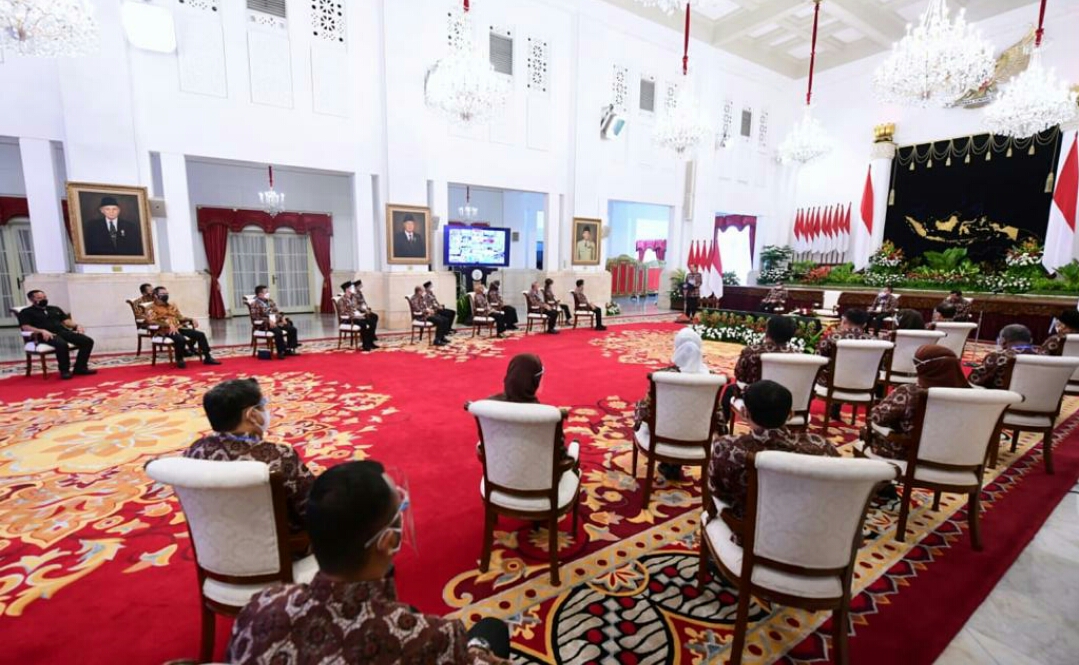 Presiden Jokowi mengapresiasi dan berterima kasih kepada seluruh bupati di berbagai daerah yang dalam setahun terakhir bekerja keras menghadapi pandemi Covid-19.