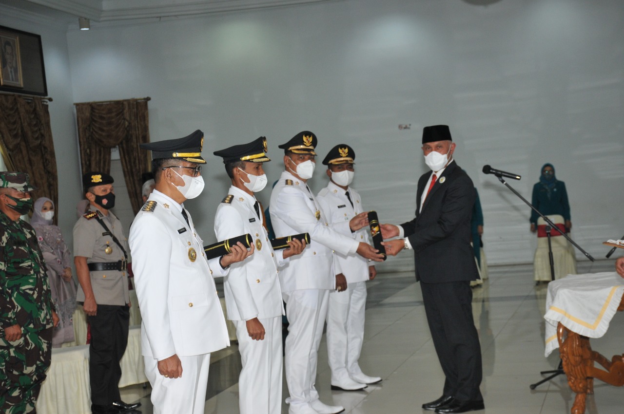 Gubernur Sumatera Barat, Mahyeldi hari ini melantik Bupati dan Wakil Bupati Kabupaten Solok dan Solok Selatan, di Auditorium Gubernuran, Senin (26/4/2021). Bupati dan Wakil Bupati Kabupaten Solok yang dilantik adalah Epiyardi Asda dan Jon Pandu. Kemudian Bupati dan Wakil Bupati Kabupaten Solok Selatan yang dilantik adalah Khairunas dan Yulian Efi.