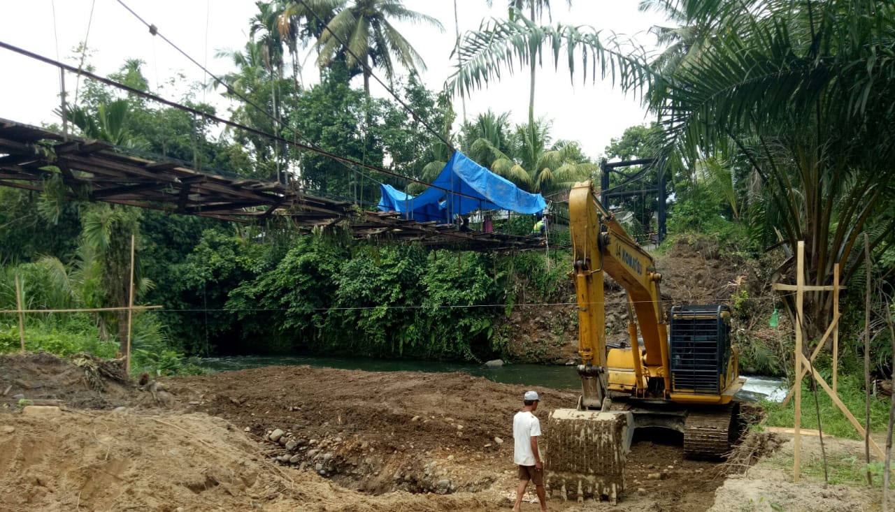 Marapi Post sempat menyaksikan para tukang bekerja Sabtu 22 Mei 2021, untuk membuka kembali jembatan yang dibangun sebelumnya menggunkan mesin las, sementara didalam sungai alat berat bekerja menggali lobang untuk tempat penegakan bandul