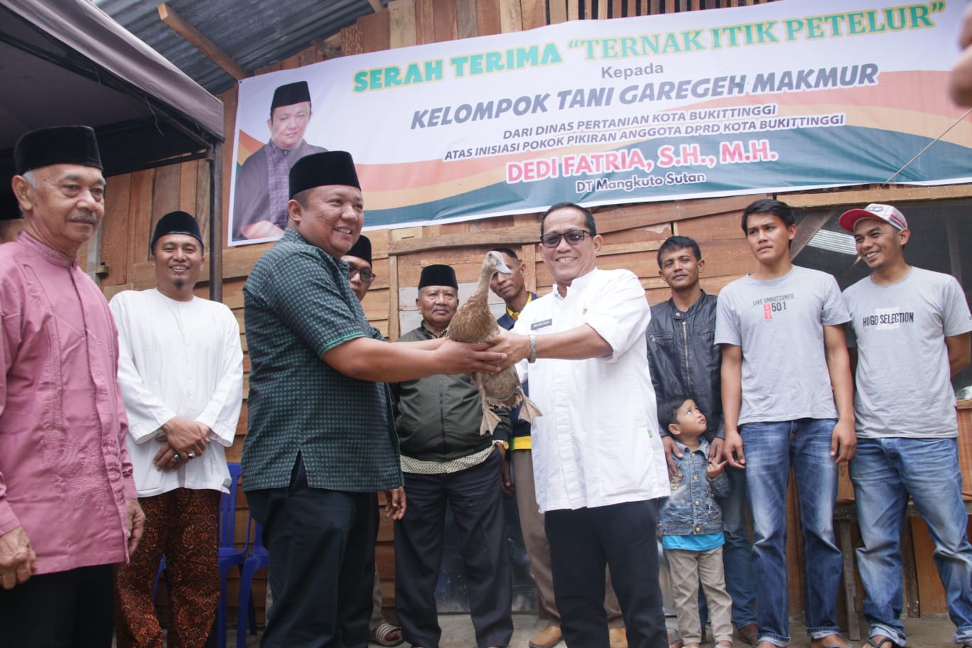 Anggota DPRD Bukittinggi, Dedi Fatria, menjelaskan, dalam satu tahun terakhir, ia mengarahkan pokir ke beberapa bidang, seperti Disabilitas, Kebudayaan, Keagamaan dan Ekonomi. Kali ini, diserahkan itik petelur sebanyak 650 ekor beserta pakannya, serta bantuan pembuatan kandang dengan nilai Rp 100 juta.