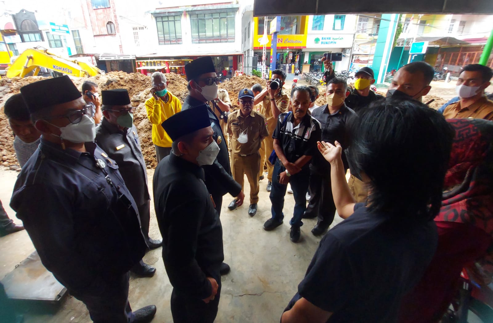 Saat tiba di lokasi, Wali Kota bersama rombongan menerima keluhan masyarakat yang notabene pedagang di lokasi setempat. Dimana, hasil galian ditumpuk di depan toko dan menutup akses jalan.