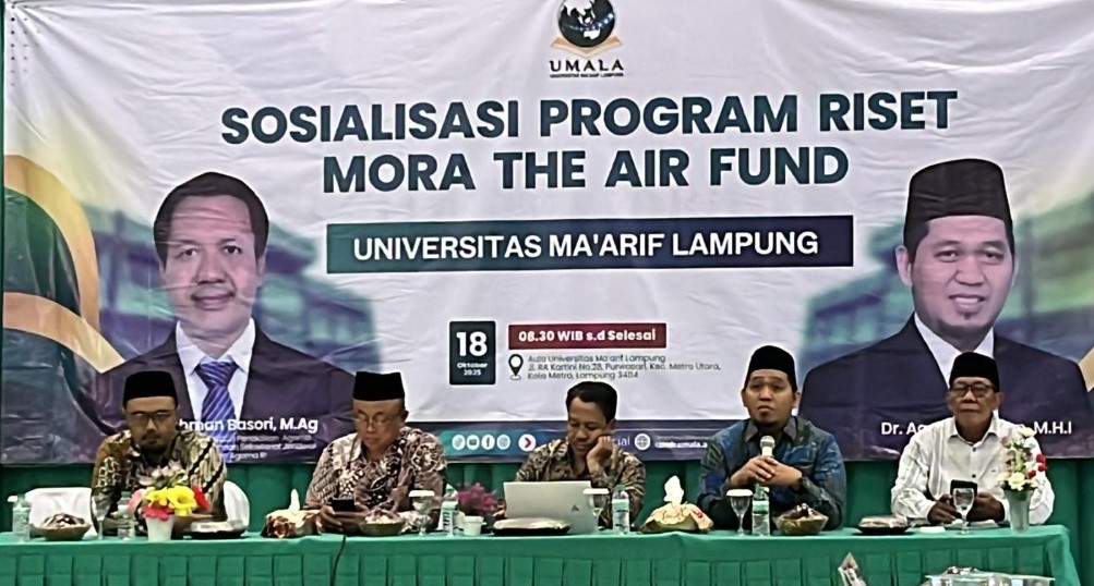 Hal itu dikatakan Kepala Pusat Pembiayaan Pendidikan Agama dan Pendidikan Keagamaan (PUSPENMA) Sekretariat Jenderal Kemenag Ruchman Basori pada acara Sosialisasi Program Riset Kolaboratif MoRA The Air Funds di Universitas Ma’arif Lampung (UMALA) pada, Sabtu (18/10/25).