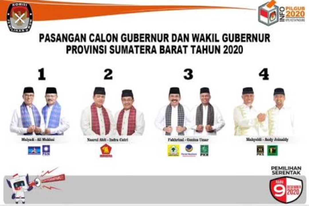SUMBAR, Siberindo- EMPAT Pasangan Calon Gubernur Sumatera Barat yang akan bertarung di Pilkada serentak tanggal 9 Desember mendatang, dijadwalkan akan tampil dalam acara bedah visi missi, pada acara Rapat Pimpinan Provinsi Sumatera Barat, mulai Sabtu 28/11 siang usai pembukaan acara tersebut oleh Gubernur Sumatera Barat, bertempat di Hotel Kryiad Bumi Minang, Padang.