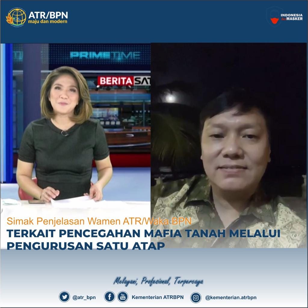Untuk diketahui, sistem satu pintu sebelumnya telah diterapkan dalam pengurusan investasi oleh Badan Koordinasi Penanaman Modal (BKPM), lalu bagaimana dengan penerapannya di sektor pertanahan, apakah ini akan bisa menjadi jawaban dalam mengikis mafia tanah? Hal ini dijawab langsung oleh Wakil Menteri ATR/Wakil Kepala BPN, Surya Tjandra pada wawancara yang dilakukan secara daring dalam program Prime Time yang disiarkan Berita Satu TV, Jumat (26/02/2021).