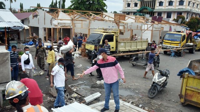Pemko Pariaman juga ikut membantu untuk mempercepat pembongkaran pasar penampungan. Beberapa personil dari Dinas Satpol PP dan Damkar Kota Pariaman, BPBD Kota Pariaman dan petugas kebersihan Dinas Perkim LH serta aparat TNI dari Kodim 0308 terjun langsung melakukan pembongkaran.