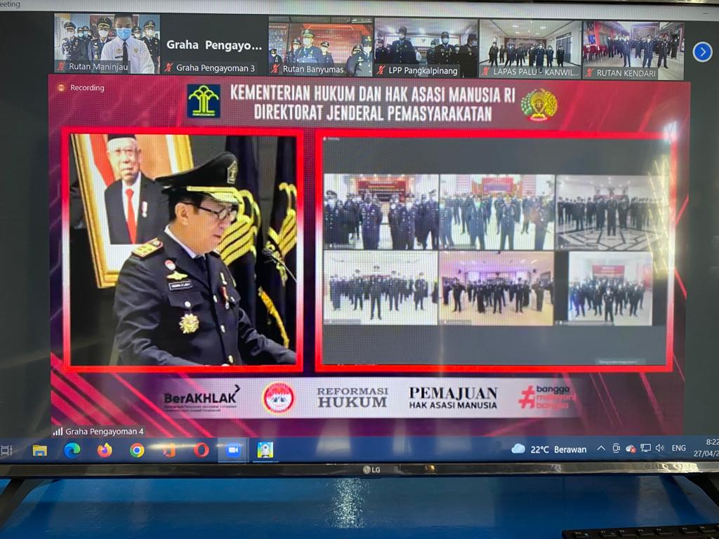 Dalam hal ini, Rutan Kelas IIB Maninjau ikut hadir secara virtual melalui zoom meeting mengikuti Upacara Hari Bakti Pemasyarakatan (HBP) Ke-58.