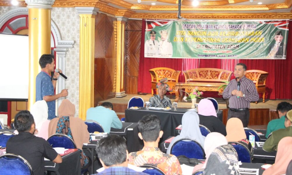 Parik Putuih, siberindo.co — Ketua DPRD Agam, Dr. Novi Irwan, S.Pd, M.M, menjadi narasumber dalam pelatihan wirausaha muda kecamatan Tilatang Kamang, Kamang Magek, dan kecamatan Palupuh di Hotel Sultan Syari’ah Parik Putuih, Kamis (26/05). Pelatihan ini diadakan selama tiga hari dengan tema ” bangun jiwa kewirausahaan dan kepemimpinan usahawan muda di kabupaten Agam”.