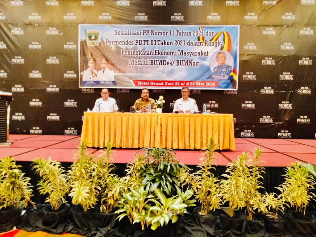 Penegasan Kadis PMD Sumbar itu disampaikannya ketika membuka Sosialisasi PP No.11 Tahun 2021 dan Permendes No.03 Tahun 2021 yang mengatur tentang Badan Hukum Bumnag atau Bumdes di Hotel Grand Zuri Premiere, Kota Padang, Selasa (24/5/2022).