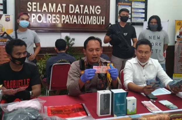 “Pemilik toko Pagaruyung Ponsel yang beralamat di Jalan Tan Malaka, Kelurahan Parik Muko Aia, Kecamatan Lamposi Tigo Nagori, Kota Payakumbuh pada tanggal 24 Juli 2020, membuat laporan polisi dengan Nomor: LP/K/225/VII/2020/Res. Dan tim Opsnal Satreskrim Polres Payakumbuh dibawah pimpinan Kasatreskrim AKP Mochammad Rosidi langsung bergerak melakukan pelacakan, dan berhasil meringkus dua tersangka pembuat dan pengedar uang palsu tersebut,” kata Kapolres