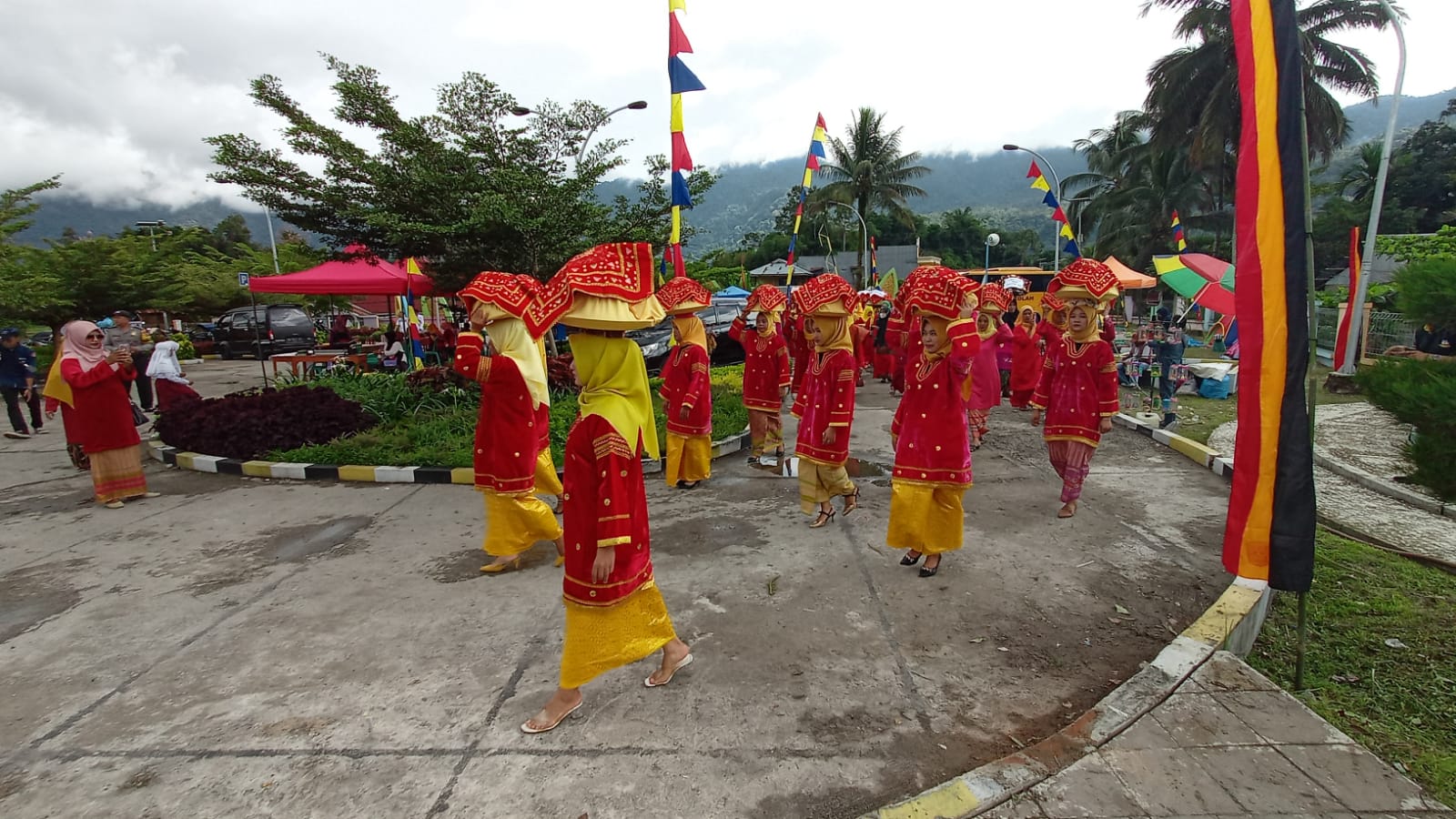 “Untuk arakan jamba ini diiringi sebanyak 230 orang bundo kanduang dari 36 OPD, 1 kecamatan, dan 9 nagari. Sementara untuk jambanya berjumlah 46 buah,” ujarnya.