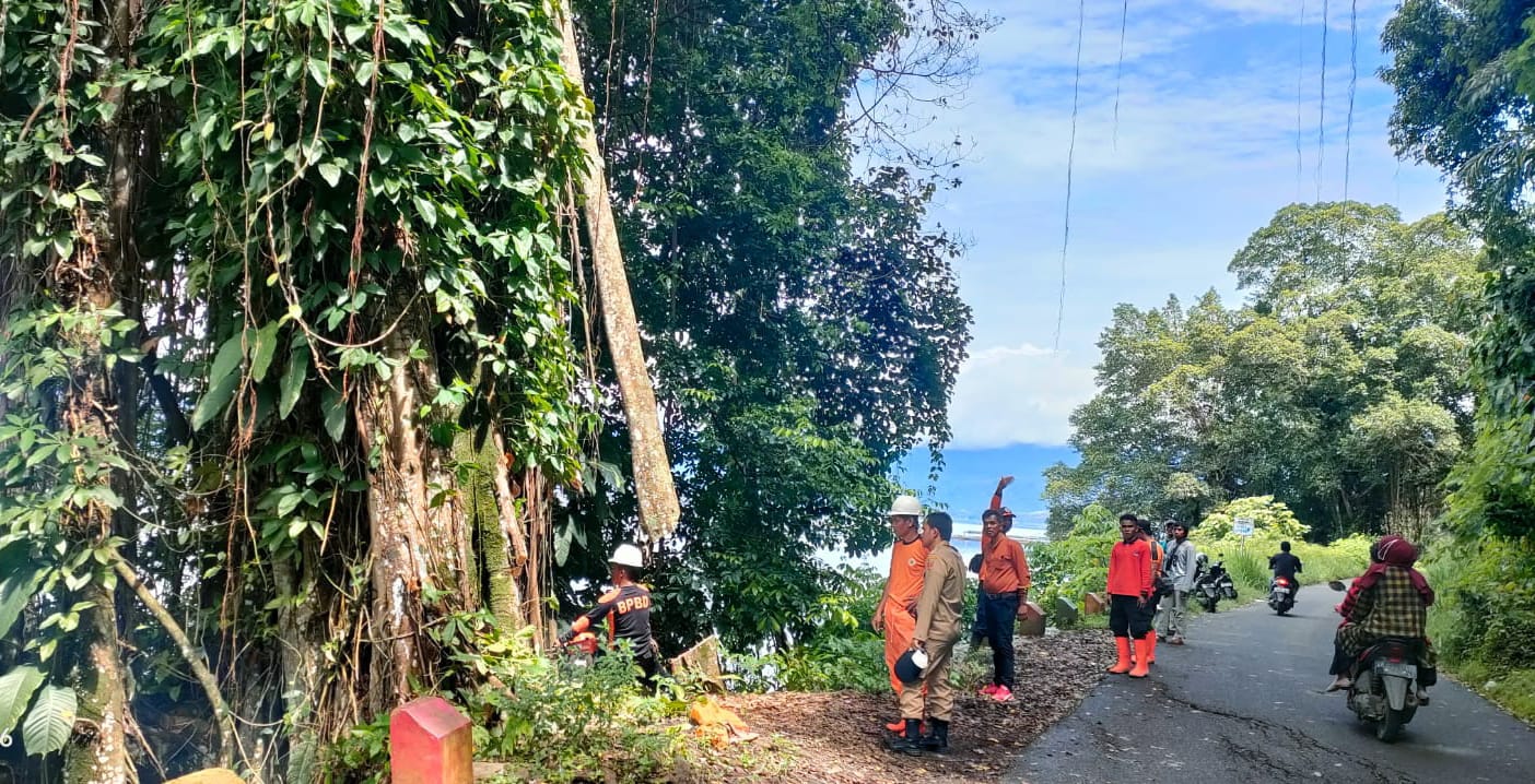 Camat Tanjung Raya Handria Asmi menyebutkan, kondisi badan jalan yang berada dekat simpang Ponpes Buya Hamka itu sudah mengalami retak dan berpotensi amblas akibat beban berat pada pohon tersebut. Menindaklanjuti kondisi itu, pihaknya bersama tim BPBD Agam, TKSK, dan nagari turun ke lokasi guna melakukan penebangan pohon.