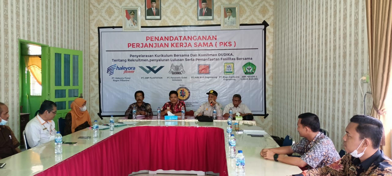 Untuk tindaklanjut program tersebut, Senin, (27/12) ditandatangi nota kesepahaman bersama (MoU) antara SMKN 2 Lubukbasung dengan 4 perusahaan besar nasional masing-masing PT.Heleyora Power Region 4 Sumbar, PT. AMP Plantation (Group Wilmar), PT. Adib Multi Enggeneering, dan PT. Mega Arta Buana.
