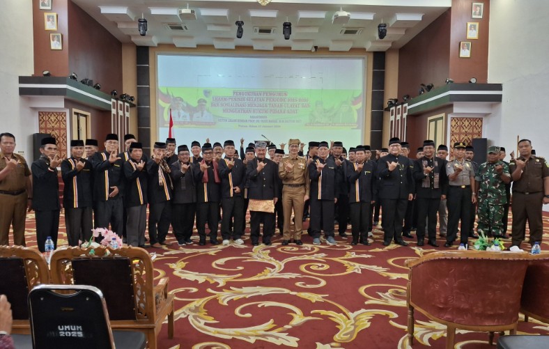 Ketua Umum Lembaga Kerapatan Adat Alam Minangkabau (LKAAM) Provinsi Sumbar Prof. Dr. Fauzi Bahar, M.Si Dt. Sati secara resmi mengukuhkan Pengurus LKAAM Pesisir Selatan masa bakti 2025-2030 ditandai dengan pembacaan Janji Setia Organisasi di Painan Convention Center, Komplek Kantor Bupati Pessel, Selasa (27/1/2026) pagi.