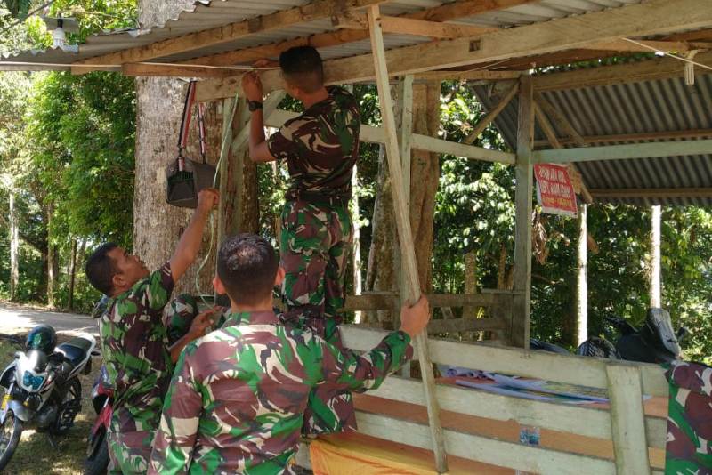 Penyiapan Posko tersebut dilakukan dengan bergotong royong dan bersama-sama serta saling membantu dalam mendukung kelancaran pelaksanaan TMMD sehingga pada pembukaan nanti semuanya sudah siap.
