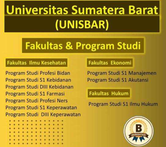 Dalam persentasinya, Dr. Hj. Nurtati, SE.,MM menyampaikan, bahwa ketiga kampus dikelola oleh tiga Yayasan, yaitu STIE SUMBAR Pariaman dibawah Yayasan LP3 Esida, Stikes Nan Tongga dibawah Yayasan Nan Tongga dan Stikes Sumbar Lubuk Alung di bawah Yayasan Pendidikan Sumatera Barat (YPSB) Padang. Kemudian, ketiga Yayasan tersebut digabungkan dalam satu Yayasan Pendidikan Sumatera Barat (YPSB) Padang dan ketiga Sekolah Tinggi menjadi Universitas Sumatera Barat (UNISBAR). Universitas yang terletak di By Pass Kota Pariaman ini memiliki 3 Fakultas, yaitu Fakultas Ekonomi: Jurusan Ekonomi dan Akuntansi, Fakultas Kesehatan: Keperawatan, Farmasi, D3 Kebidanan, Keperawatan, Farmasi, Kebidanan, Profesi Ners dan Profesi Bidan serta Fakultas Hukum: Ilmu Hukum. Seluruh Program Studi/Jurusan dan Institusi telah Terakreditasi B, jadi UNISBAR memiliki dua Jurusan D3, enam Jurusan S1 dan dua Jurusan Profesi.