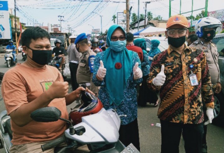 Pembagian masker tersebut dihadiri oleh Wakil TP PKK Emi Yudesri, BPBD, Dishub, Pol-PP dan Sat Lantas Polres Pasbar.