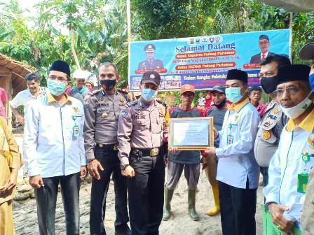 Usai peletakan batu pertama, Baznas Padang Pariaman menyerahkan piagam penghargaan kepada Bhabinkamtibmas Sintuak AIPDA Roi Martin Nst, SH yang memprakarsai pelaksanaan bedah rumah.