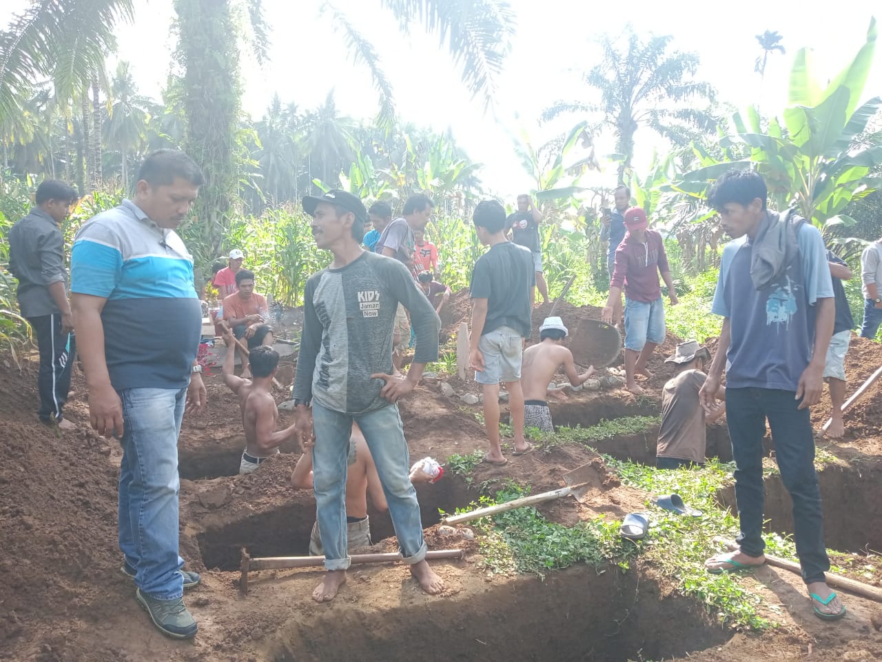 Proses pemindahan yang dihadiri keluarga warga yang dikuburkan termasuk warga Kampung Baru, Sungai Jariang yang didampingi Kasi Jaminan Bantuan Sosial Dinsos Agam Windra Fitri dan aparat pemerintah nagari persiapan Sungai Jariang Lubukbasung.