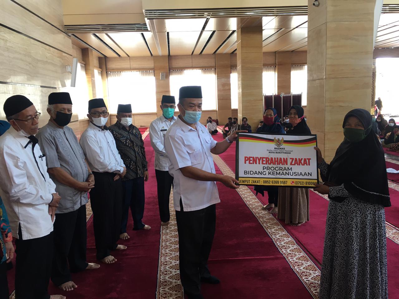 Bukittinggi, KABA12.com — Setelah mustahiq di kecamatan Guguak Panjang dan MKS, Badan Amil Zakat Nasional (Baznas) Kota Bukittinggi menyerahkan zakat bantuan konsumtif untuk mustahiq di kecamatan Aur Birugo Tigo Baleh (ABTB). Bantuan diserahkan secara simbolis oleh pengurus Baznas serta perwakilan Pemko Bukittinggi, di Masjid Jami’ Aur Kuning, Kamis (29/04). Ketua Baznas Bukittinggi, Masdiwar, menjelaskan, pihaknya telah menyerahkan zakat bantuan konsumtif kepada mustahiq di dua kecamatan di Bukittinggi dan hari ini diserahkan kepada mustahiq di kecamatan ABTB. Bantuan konsumtif ini diserahkan melalui program kemanusiaan Bukittinggi Peduli.
