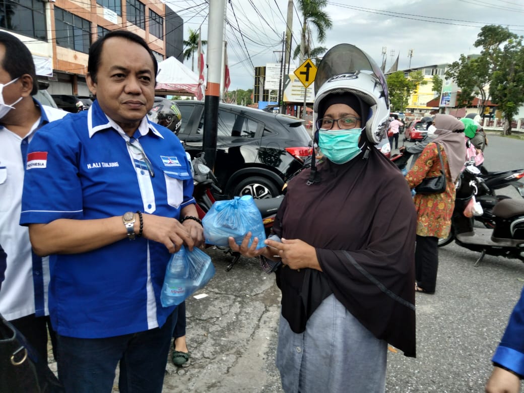 Tampak yang ikut langsung membagikan takjil politisi senior Partai Demokrat HM. Nurnas, Ir. Arkadius Datuk Intan Bano, Irzal Ilyas Datuak Lawuik Basa, Ali Tanjung, SH., termasuk juga Wakil Ketua DPRD Sumbar Suwirven Suib, SH.