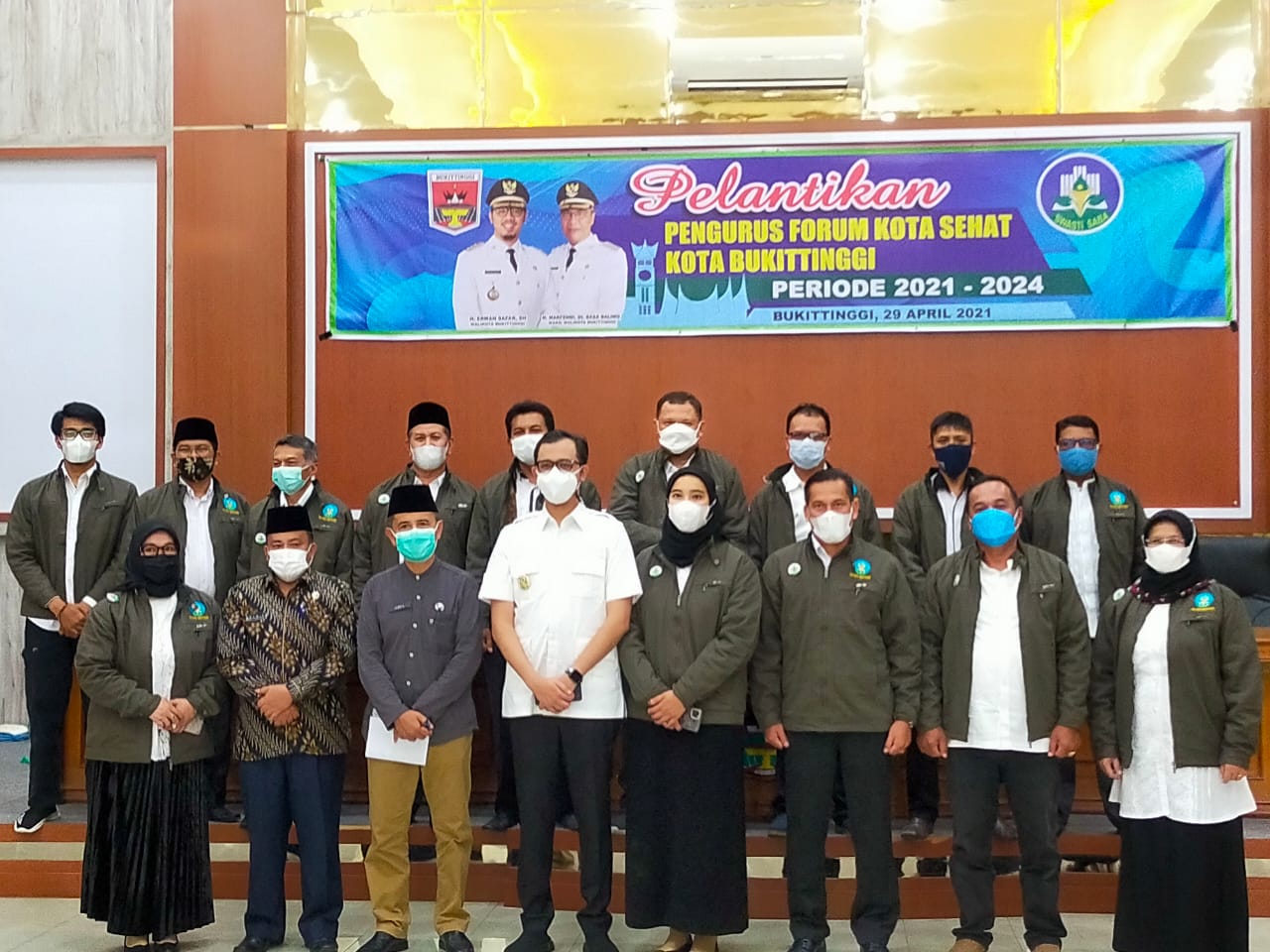 Bukittinggi, KABA12.com — Wali Kota Bukittinggi lantik 16 pengurus Forum Kota Sehat (FKS) kota Bukittinggi periode 2021-2024, di Aula Balaikota, Kamis (29/04). Pelantikan turut dihadiri sejumlah kepala OPD, Camat dan Lurah di lingkungan pemerintah kota Bukittinggi.