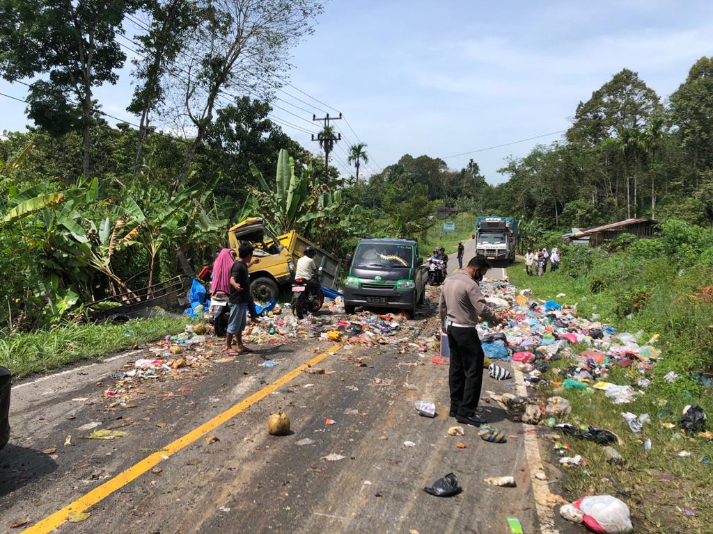 Kejadian ini, mengakibatkan kendaraan rebah dan terseret ke kanan tetap dan bertabrakan dengan sepeda motor maka pengendara sepeda motor dan pengemudi truck menderita luka-luka dan mengalami kerusakan materil.
