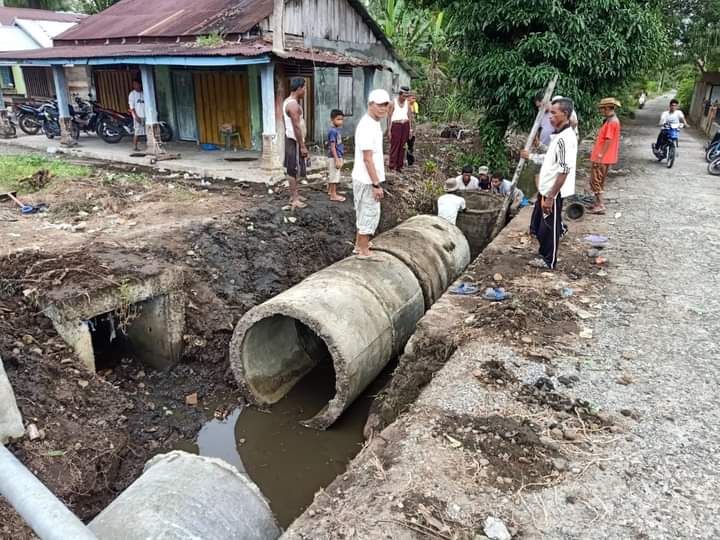 TANJUNG MUTIARA, Siberindo–Warga Jorong Banda Gadang, Nagari Tiku Selatan, Kecamatan Tanjung Mutiara, Kabupaten Agam, Sumatera Barat, gotong royong membangun kembali gorong-gorong dan jalan rusak di Simpang Bancah.